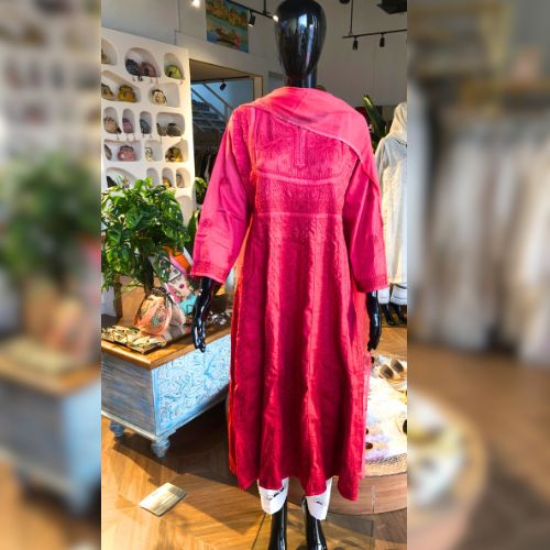 Chikankari on Cotton Muslin fabric adorned with resham thread in anarkali style, perfect for any occasion and festive wear.
