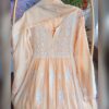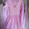 Chikankari on Soft Mul Chanderi fabric adorned with thread work, poth work and cutdana work in anarkali style, blending delicate artistry with timeless sofistication, perfect for any occasion and festive wear.