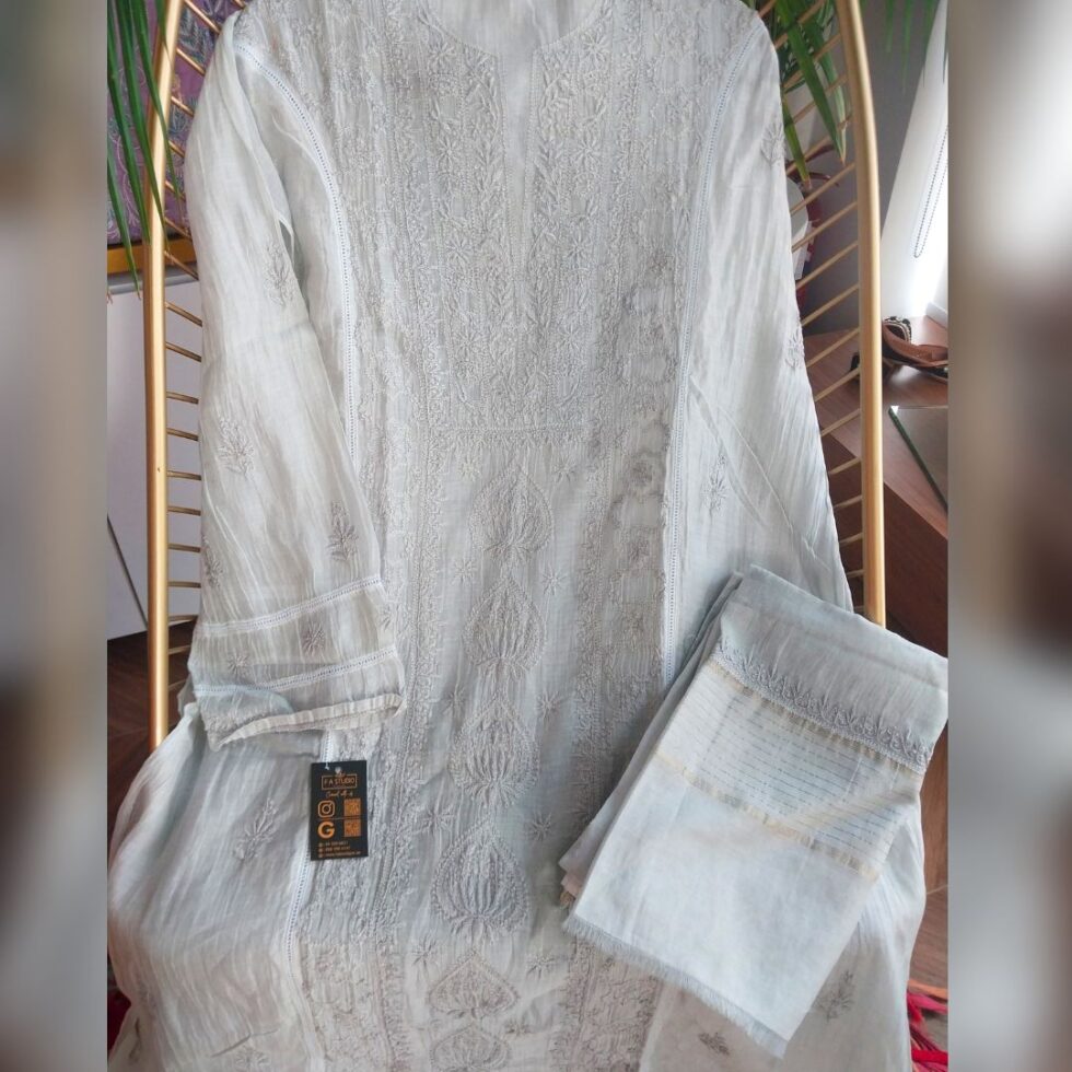 Elegance in every thread, Chikankari on Mul Chanderi fabric with thread work.
