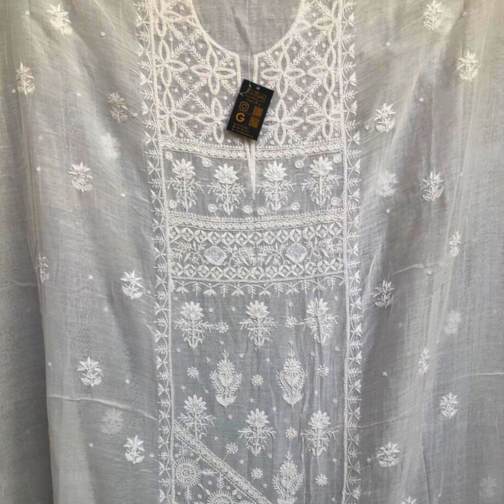 Elegance in every thread, Chikankari on Mul Chanderi with, poth work and cutdana work.