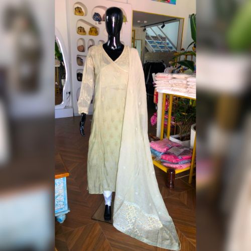 Chikankari on muslin adorned with resham threads and banarasi brocade dupatta, perfect for any occasion and festive wear.