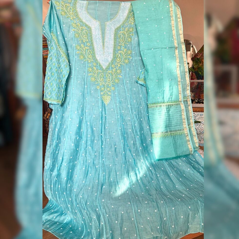 Elegance in every thread, Chikankari on Soft Mul Chanderi with poth and cutdana work.