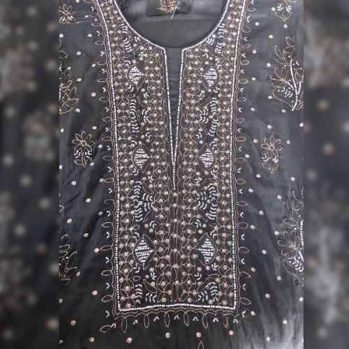 Cotton Chanderi blends tradition and comfort with its lightweight texture intricates with poth work, cutdaana and kasab that comes with kurta and dupatta.