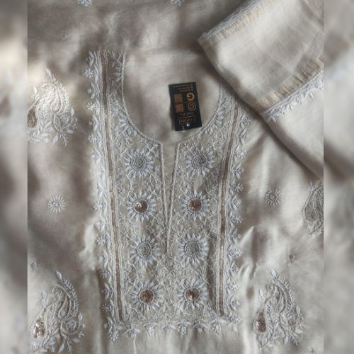 Elegance in every thread, Pure Muga Silk Chikankari.