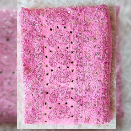 Elegance in Georgette with Kasab, Gotapatti, and Chikankari embroidery.