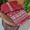 A Kantha dupatta features intricate hand-stitched embroidery, originating from Bengal, India. Made from cotton or silk with each piece reflecting traditional craftsmanship and cultural heritage.