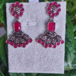 Traditional and ethnic-style earrings, featuring vibrant stones in different color, designs include floral studs and intricate antique silver patterns.