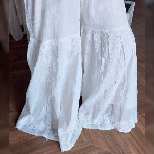 Where elegance meets ease, Chikankari Gharara on soft mul chanderi fabric.