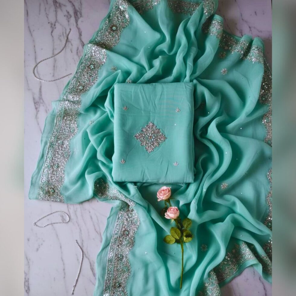 Where luxury meets graceful drape, Hand-done Zardozi work on Crepe silk.